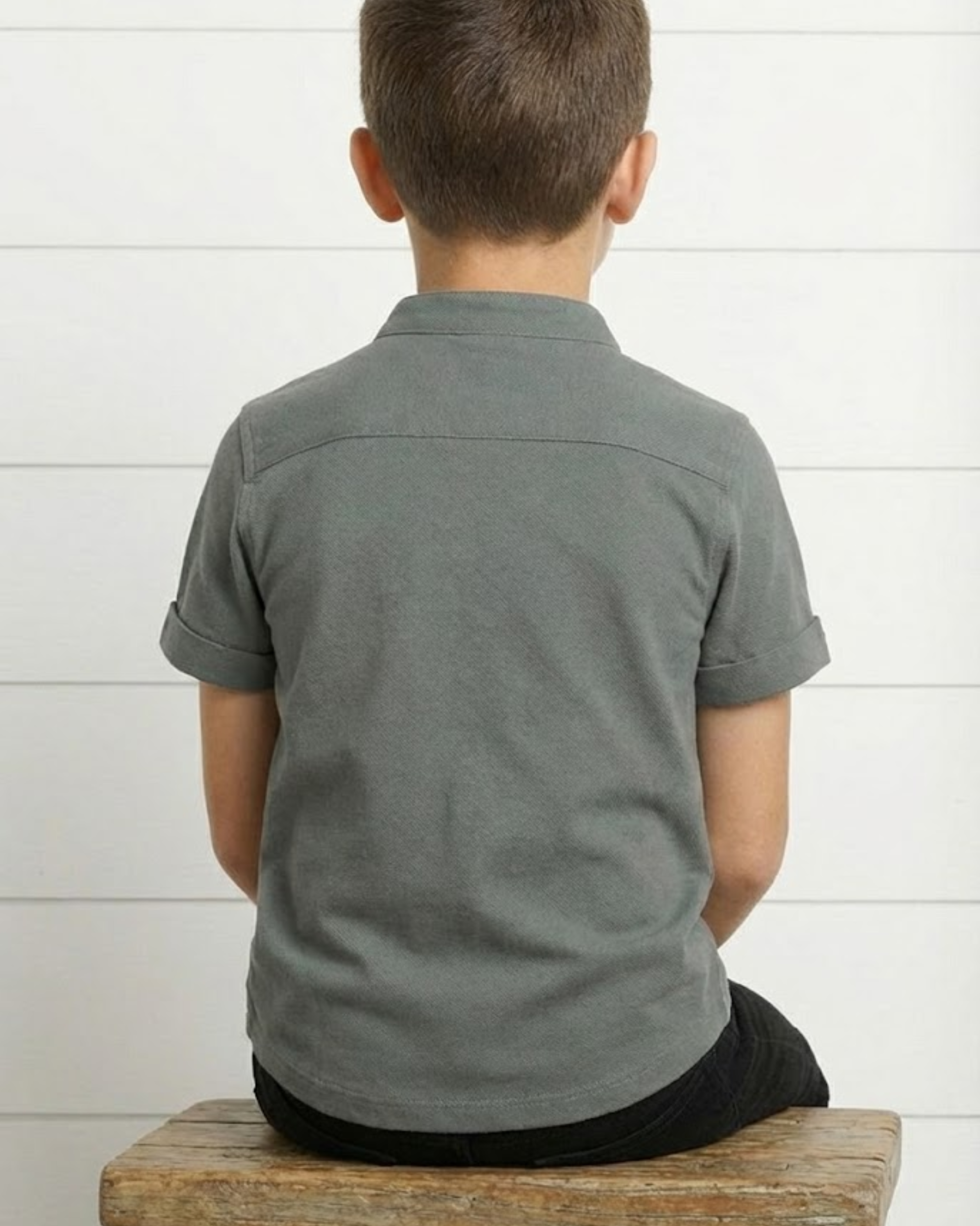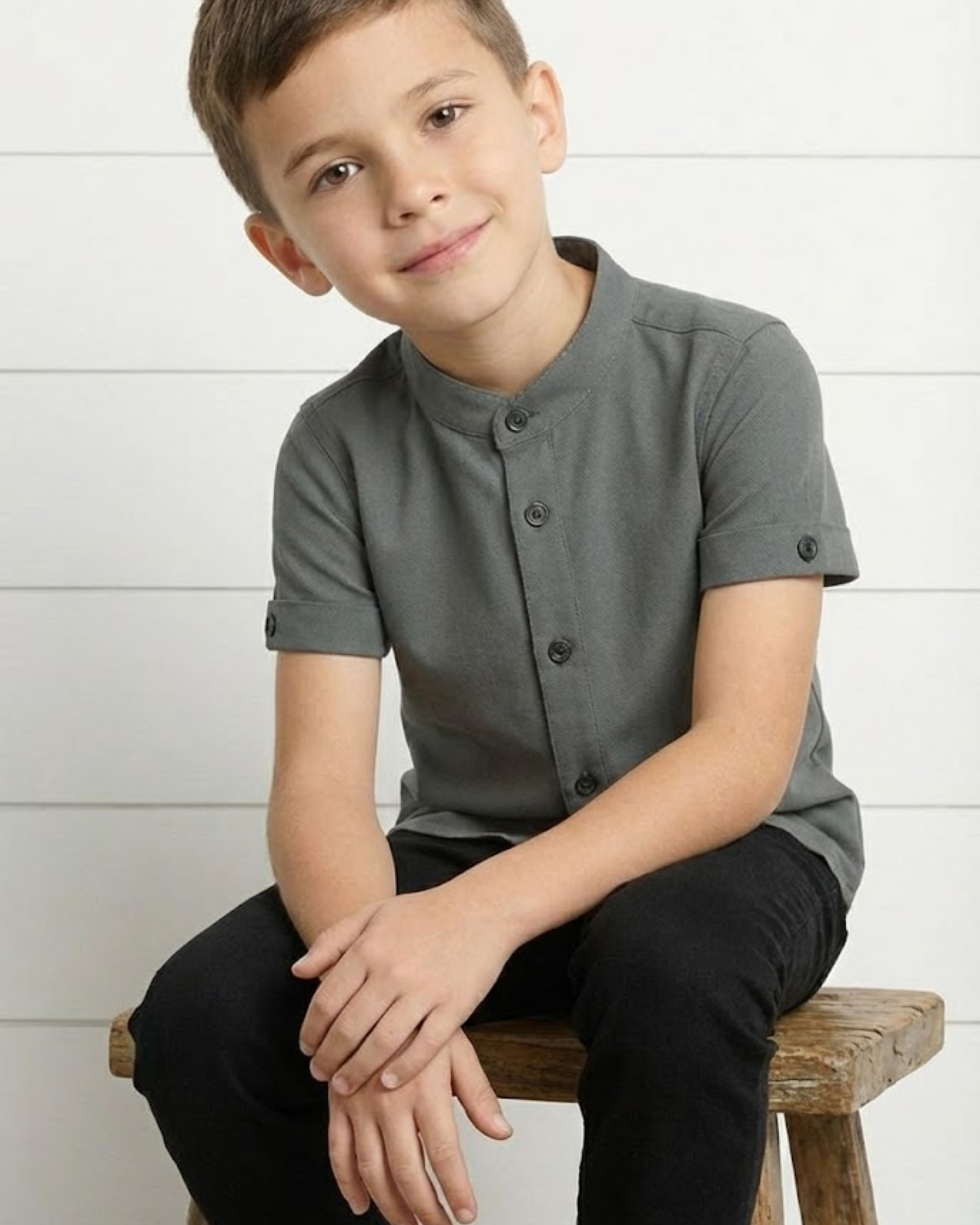 Boys Classic Grey Short Sleeve Shirt with Mandarin Neck